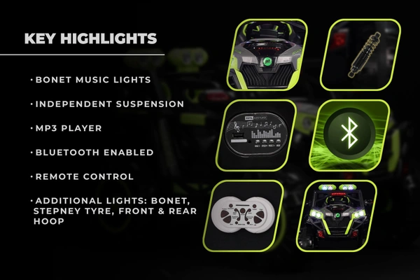 - Additional Light:Bonet,Front and Tyre Hoop